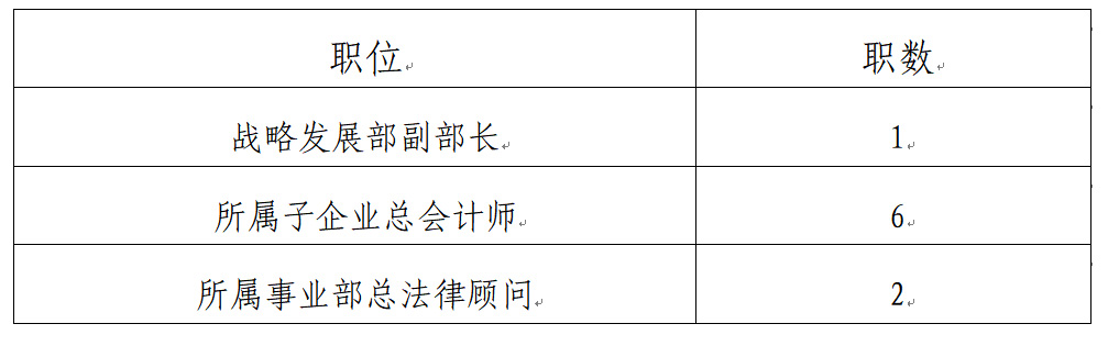 (1)全日制法律专业本科及以上学历,具有企业法律顾问、法律职业资格证(A)、律师或法官执业资格。(2)具备8年以上相关行业领域法律事务、合规管理经验,从业经历还需满足下列条件之一:① 担任企业法律事务机构负责人及以上职位满3年,或具有国有企业法律顾问职业岗位等级资格证书(一级)。